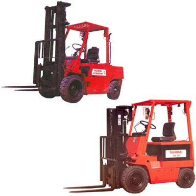 Mahindra and Mahindra one of the leading manufacturers of Diesel/Electric Forklifts in the Brand name of SWARAJ in Chandigarh. Swaraj Forklifts is of Komatsu design fitted with powerful Kirloskar engine, it has excellent hydraulic system fitted with Wipro/RHPL Cylinders, with Korean Transmission. Swaraj Forklifts have great reputation for Diesel and Electrical forklifts. We are the authorised dealers for Swaraj Forklifts for the territory of Karnataka and Chennai. We have many parts in our stock and could be supplied in shortest of time ready supply. We have well trained service engineers Diesel and Electric Engineers to attend the any type of breakdown. |